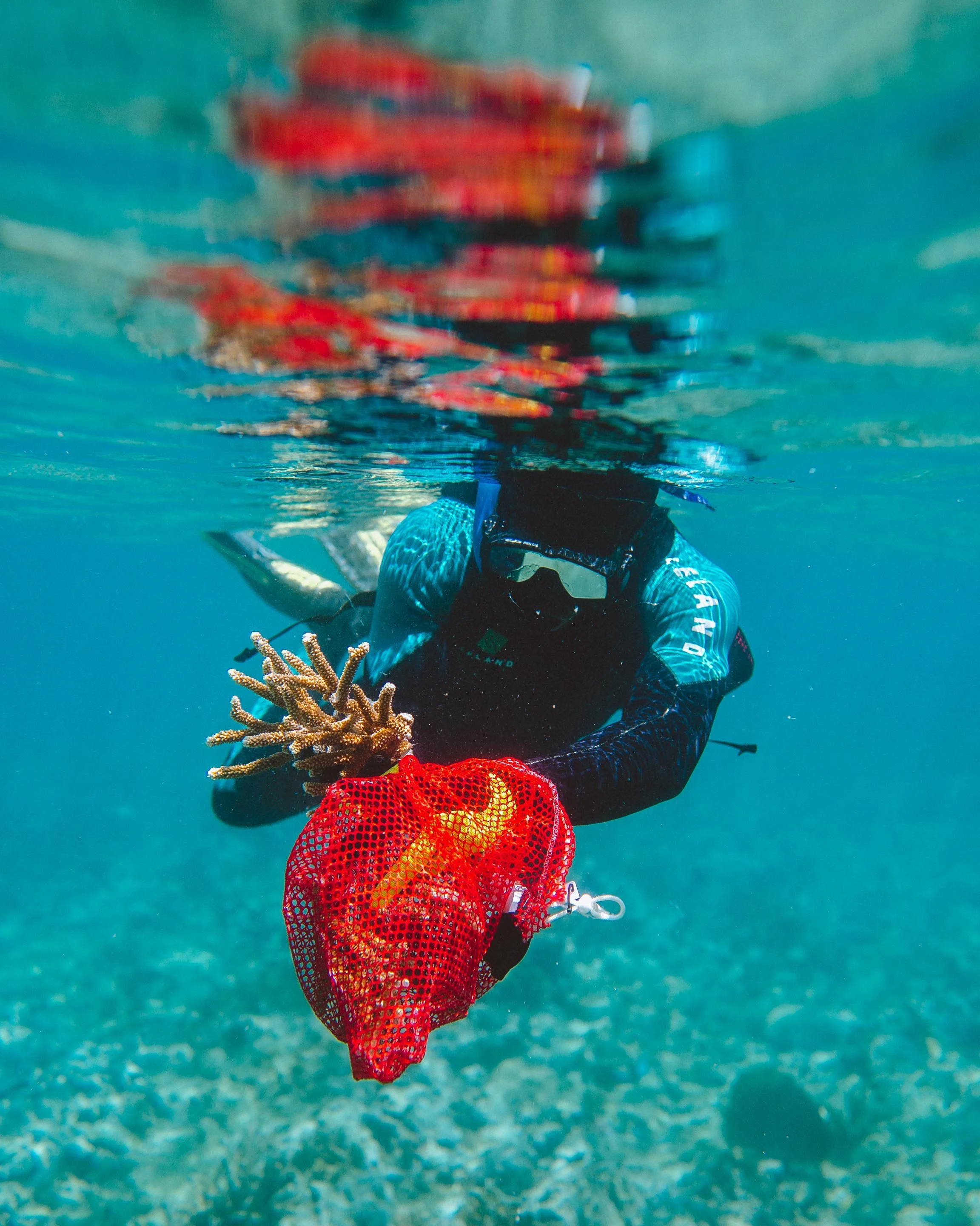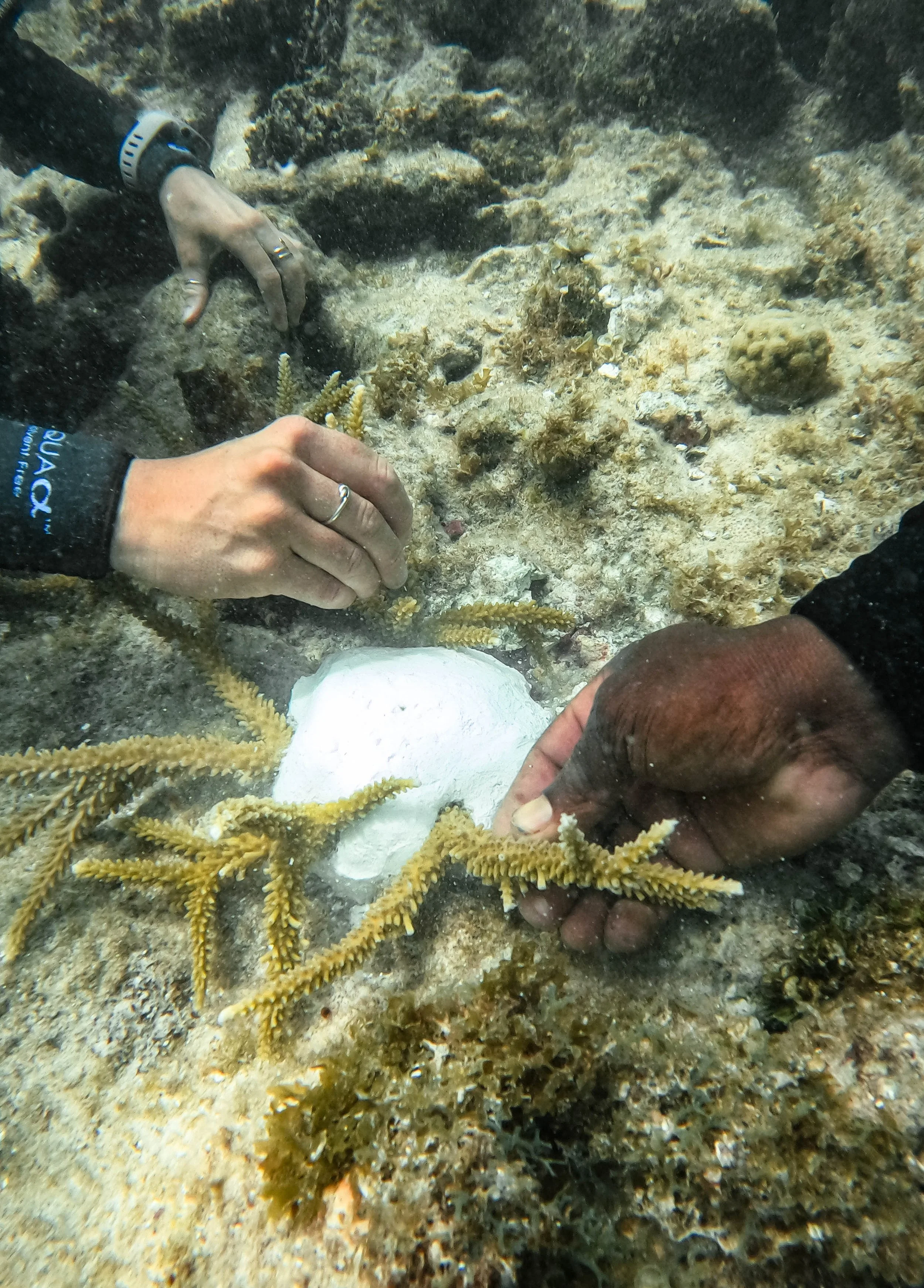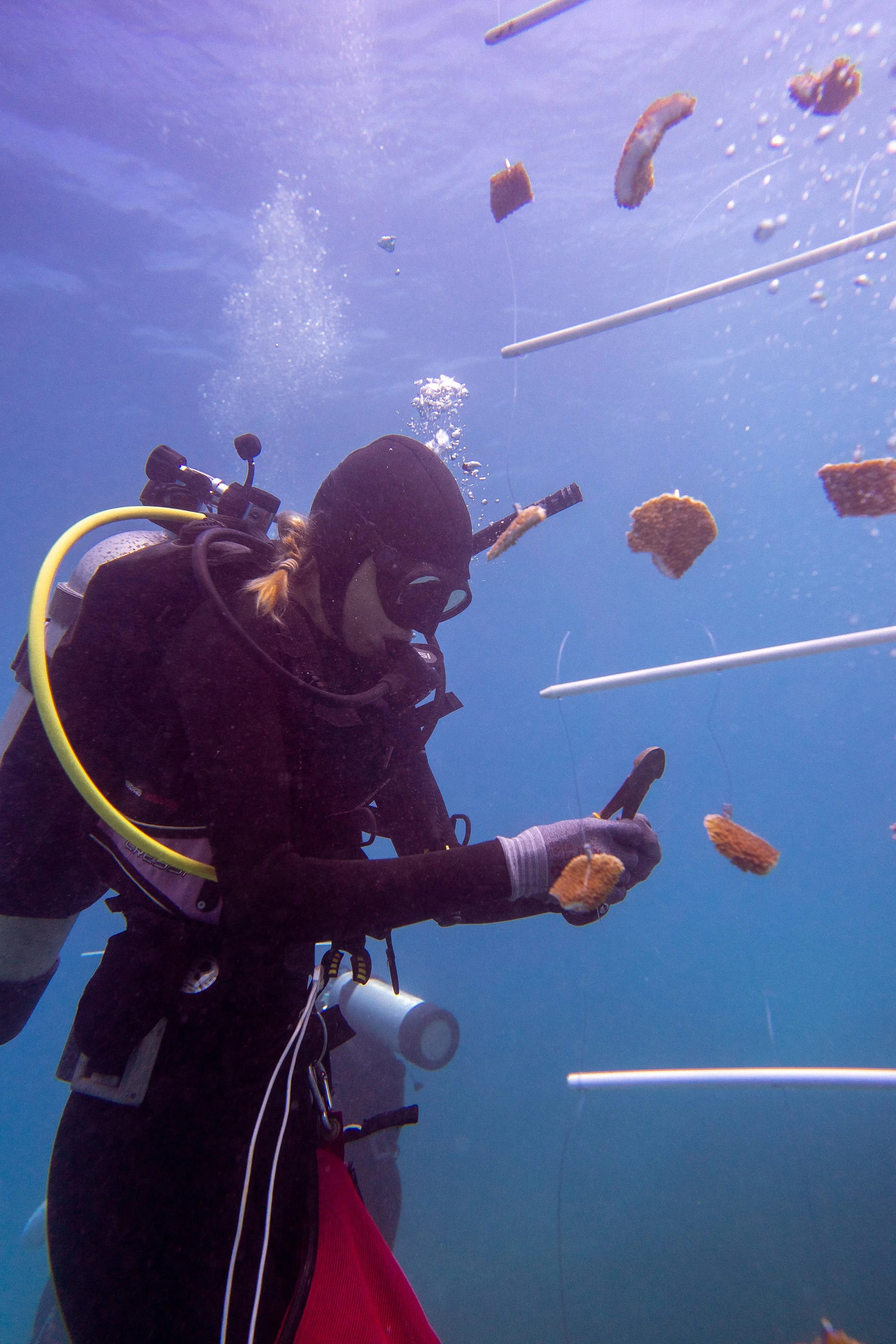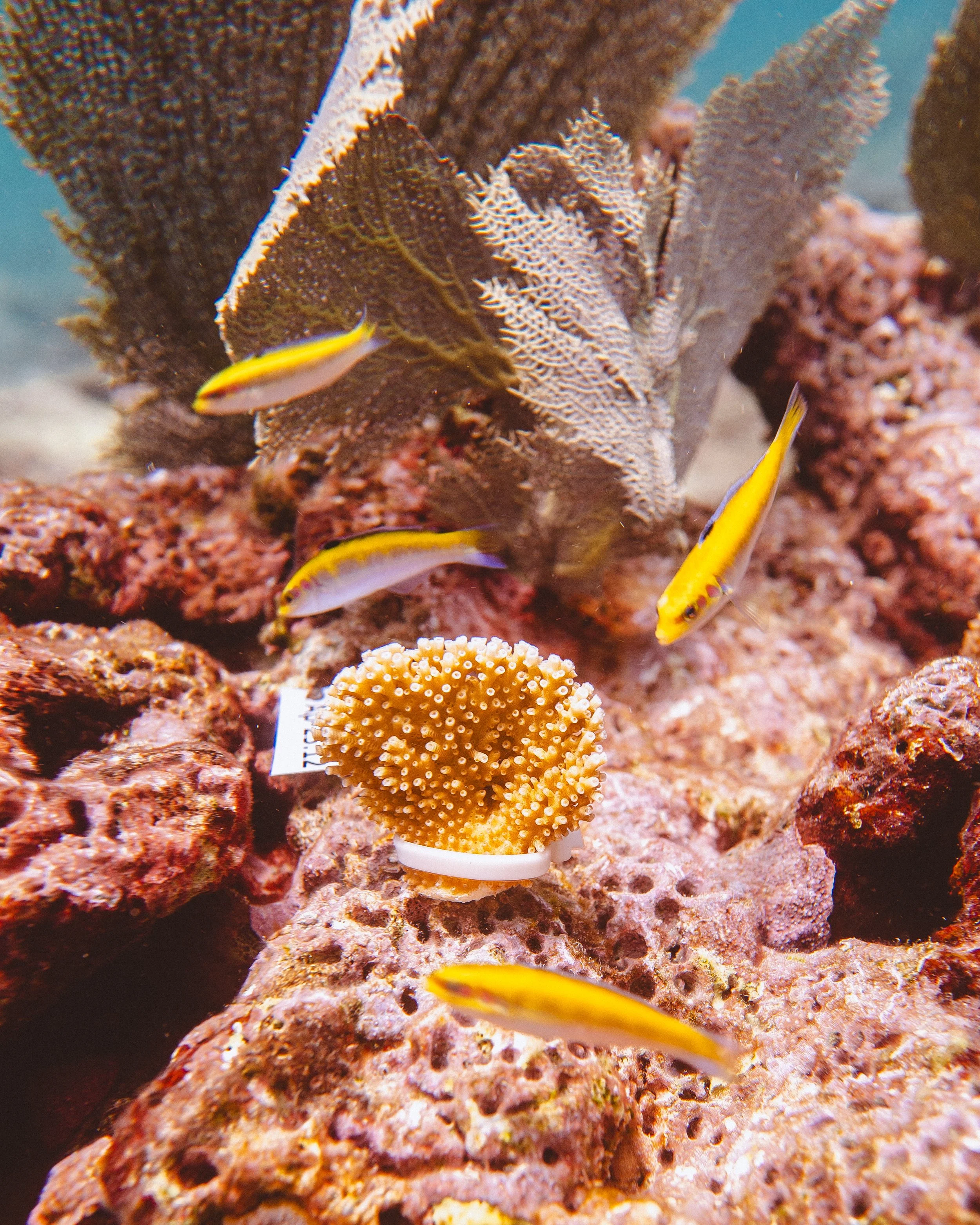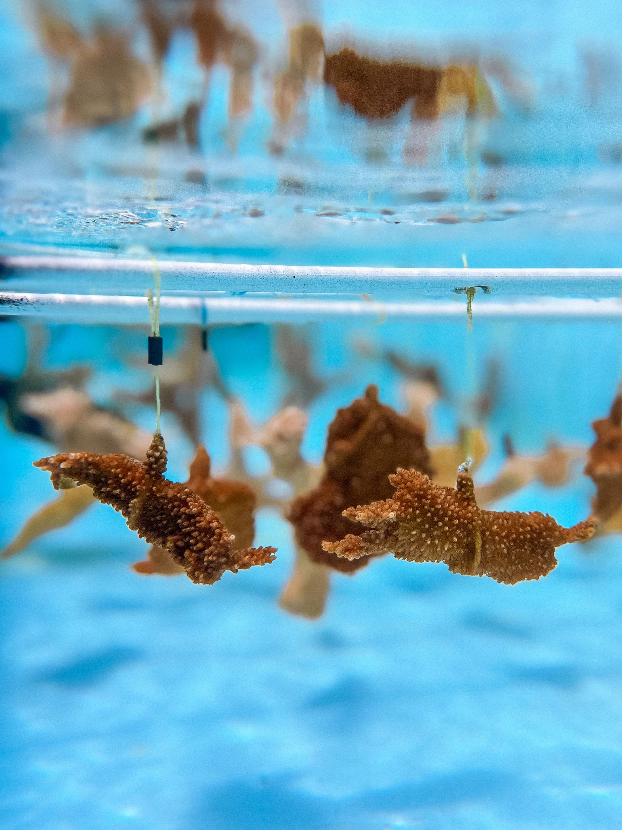 coral fragments in a protected nursery area where they can be propagated and monitored