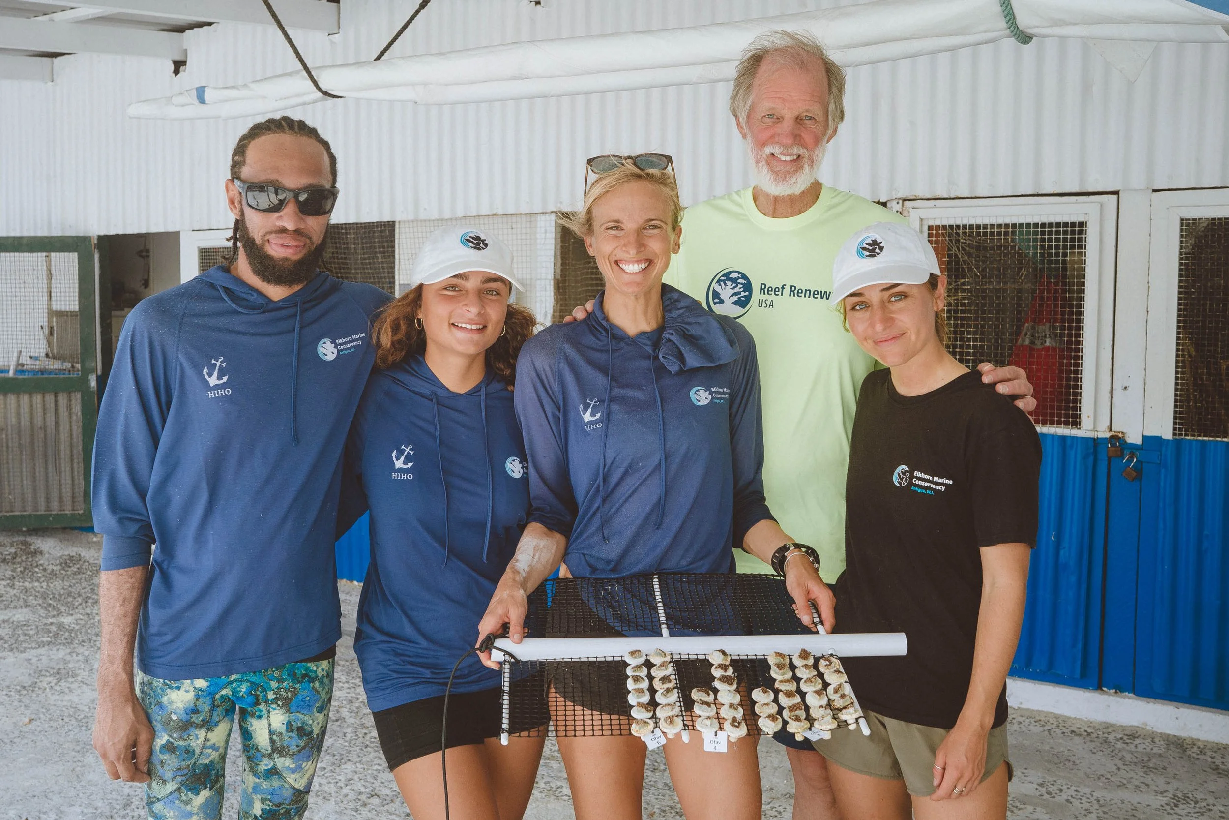 AnuBlue operates two coral nurseries adjacent to Green Island and York Island on the east coast of Antigua, as well as nurseries at Cades Reef and Jumby bay. We intentionally collect corals that demonstrate a higher resistance to stressors such as poor water quality, thermal stress and disease epidemics. Our nurseries house 14 species of reef-building corals, many of which are critically endangered. These corals are cultivated using a combination of ropes, PVC trees, and tables. Our Ten Pound Bay nursery at Green Island also includes a small on-land visitor station and shallow coral nursery structures ideal for educational snorkel trips for all ages!